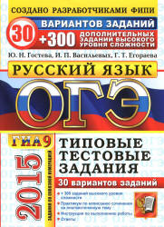ОГЭ (ГИА-9) 2015. Русский язык. 30 вариантов типовых тестовых заданий + 300 дополнительных заданий части 3(С). Гостева Ю.Н., Васильевых И.П., Егораева Г.Т. (2015, 208с.)